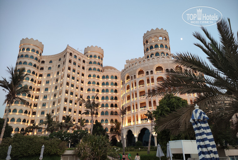До моря от отеля метров 300. Море отличное, заход хороший. В момент прилива быстро наступает глубина, что не очень для маленьких детей. Песок в перемешку с ракушками и очень мелкими камушками. Лежаков хватает. Не хватает на пляже кабинок для переодевания. Бар и туалет возле бассейнов. На пляже за дополнительную плату катера, банан, сапы, катамараны. Цены от 100 дирхам за человека.