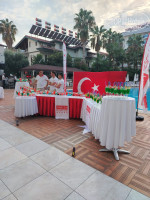 Отдыхали с мужем из Екатеринбурга в этом отеле.Обслуживание на очень хорошем уровне,все улыбаются,ребята стараются ,номер дали вместо оплаченного Клаб трёхместный большой ,видимо не было свободных дешёвых ,без всяких доплат .Питание сверх всяких похвал,мидии,креветки,лосось ,баранина,говядина,индейка,кура,то салаты из перечисленного,то шашлык,то жаркое ,то все вместе ,даже попробовать все не сможете,очень разнообразно и много,фрукты каждый прием пищи : арбузы,дыни, яблоки, виноград, апельсины,груши.Десерты ,аж ломятся столы ,это и торты,и различные пирожные,и муссы и ещё всего очень много,что попробовать все тоже не реально.Для детей и аквапарк и лунопарк и вечером спектакли .Спиртное хорошее,делают различные коктейли,не жалеют,что попросишь ,то и нальют,и виски и ром и джинн и водку и пиво , короче все есть ...Ночью также можно поесть и выпить ,но мы не ходили,так как нам хватало всего в течении дня.Помимо обычных завтрака ,обеда и ужина в течении всего дня пекут лепешки с различными начинками,есть снек бар, мороженное,то есть голодными точно не останетесь и все вкусно.Море одно из лучших на побережье Турции ,заход песок,для не умеющих плавать и детей раздолье,до глубины прилично идти.Лежаков хватало всем и на пляже и около бассейнов ,в любое время .Бассейны чистые ,вода не холодная ,вообще нам все очень понравилось,и вернуться хотим ещё сюда и порекомендовать знакомым .