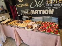 Еды немного, (особенно на завтраках половина контейнеров пустая,нужно стоять в очереди за яичницей, каши нет, оладушки есть) но вкусную найти можно. Мой фаворит- Баклажаны, они здесь каждый день в разном виде, жаренные, печёные, в кляре, всегда невероятно вкусные, дважды из семи дней была даже красная рыба на гриле. Некоторая еда перченная и пересоленная, но не вся. Арбуз сладкий и сочный в большинстве случаев, есть на каждом приёме пищи. Еда доступна почти весь день в столовой и на пляже. До 00 дают ночной суп, обычно один из двух с ужина, тот, что менее вкусный, иногда он острый или солёный, яаще похож на томатную пастуиз банки. Вкусных десертов для себя здесь не обнаружили, все одинаково приторные. Дыня никакая.