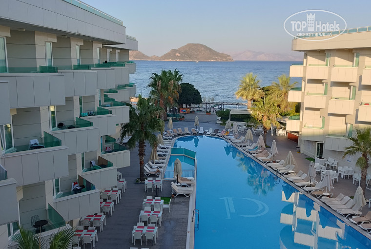 Отдыхали в начале сентября, с 2 по 10, заселились сразу, надели браслеты и отнесли чемоданы в номер .Номер небольшой, но места для 2- х достаточно.Вид с балкона потрясающий.Питание хорошее, единственное из мясного курица и рыба.яРыба гриль была по вторникам, в остальные дни курица тушёная, и гриль.Не было субпродуктов, печенки и желудков, хотя бы.Колбасы, сыры, сосиски были каждый день, овощей, зелени, фруктов было много.Пиво свежее каждый день, коктейли, вино сухое, нормальное. Поселок Тургутрейс в 15 мин. хотьбы по набережной.Там можно купить лекарства cувениры и подарки, заказать кофе.По субботам базар .Ездили на экскурсию в амфитеатр, ворота Миноса, ветряные мельницы и крепость святого Петра.По телевизору можно смотреть Ютуб, кабельные каналы зависают.Море хорошее, но холоднее чем в Кемере, градуса на 3-4, вполне комфортное.