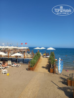 Удобный заход в море с берега и два с пирса. Песчаный пляж. Видно как руководство отеля заботится об удобстве туристов. Водная территория без камней, что не скажешь про соседние территории отелей.
