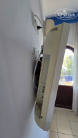 Заселились ночью, три человека - я, жена и теща. Вначале дали номер с видом на бассейн на двух человек. После вопроса, кто должен спать на полу, регистратор сумел досчитать до трех и принёс ключ от номера с видом на море с доп.кроватью. Но проблемы с математикой, видимо, тут не только у регистратора. Количество полотенец менялось каждый раз и не в нашу пользу. Приходилось в душе пользоваться своими пляжными полотенцами. Лифт тоже не внушал доверия, очень тесный, скрипучий, но хоть никто в нём не застревал. Вид номера поначалу вогнал в ужас. Телевизор висит на 2/3 вылезших дибелях, кроме зерна поймать на нём ничего не удалось. Кондиционер страшноватый, но работает хорошо. Дверь балкона разкурочена так, что зарыть её невозможно. Кровати удобные, бельё чистое. Вешалки в шкафу разнобойные, видимо, оставленные прошлыми жильцами. Из посуды - две пепельницы и стакан для зубных щёток, который изчез во время уборки, вместе с полотенцами. Шланг для душа протекает так, что можно мыться вдвоём, бидэ подтекает постоянно. Фен рабочий, но зеркало настолько старое, что страшно, занавеска для душа отсутствует. С водой проблем нет, напор хороший. Сушка одежды на балконе весьма рискованная испортили ржавчиной две рубашки и одно платье, ещё и мелкие вещи пстоянно сдувало ветром. Купили прищепки и оставили будущим жидьцам в наследство.