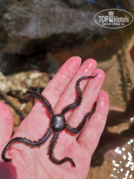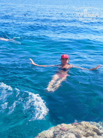Море-шикарное,тёплое,прозрачное со множеством рыб.Риф длиной в километр с лева от понтона,смельчаки заплывали далеко и видели мурену и скатов.Мне повезло пофоткать ската вдоль берега,море по колено и множество рыб.