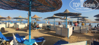 До моря пешком минут 5-7, можно доехать на шаттле с веселой музыкой и приветливым водителем. Если шаттл стоит, а водителя нет, то через охранника его легко вызвать и вас довезут до пляжа. Также и обратно. Море шикарное. Заход с песчаного берега (он обозначен буйками) и дальше плыть вдоль стены кораллов. Рыб много и у берега, и у кораллов. Видели черепах, мурену, скатов, крылатку, всех не перечислить))) Можно полежать в воде на песчаном пляже, глубина до колен, в прилив чуть больше. Мест на пляже хватало, у лежаков есть переносные загородки от ветра. Полотенца можно брать и сдавать на пляже, также и в аквапарке. При получении полотенца вас проводят до лежаков, при этот несут полотенца и расстелят их на выбранных лежаках. Переставят, поправят лежаки, как вы попросите. Аниматоры проводят йогу, стретчинг, танцы, пенные дискотеки, можно поиграть в волейбол, бочче.
