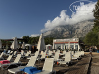 Территория совсем небольшая, гулять с ребенком негде, бассейн небольшой, лежаков вокруг него много, но около бассейна практически никто не лежал. На пляже лежаков достаточно, но большинство заняты сразу с утра, и как всегда на половине из них никого нет (видимо, привычку занимать лежаки и не приходить потом на них до середины дня из людей невозможно вывести, при этом не важно из какой страны люди… 😒). Входа в море с песком у отеля нет, только спуск по лестницам. С ребенком ходили на соседний пляж.