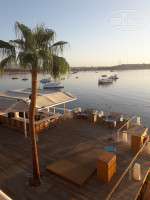 он один на верхней "палубе". Работает до 18, потом его чистят. Утром не знаю со скольки, но поднималась к нему в начале седьмого утра встречать рассвет, кто-то плавал. Там вообще никого ниоткуда не выгоняют. Если не афишировать и вести себя прилично, можно и спать на берегу. Мы, гуляя ранним утром по пляжу бухты, видели у какого-то отеля на лежаках спящих дайверов)