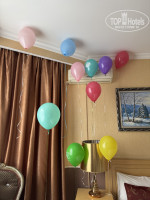 От обычного номера его отличало то, что в углу висело 10 самых дешевых Шаров и бомбочка в ванной. А так же огромная пройденная дырка на диване, неудачно прикрытая подушкой. Обещанного игристого и десерта тоже не было. Донесли все это спустя еще часа полтора, после напоминания администратору.
