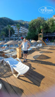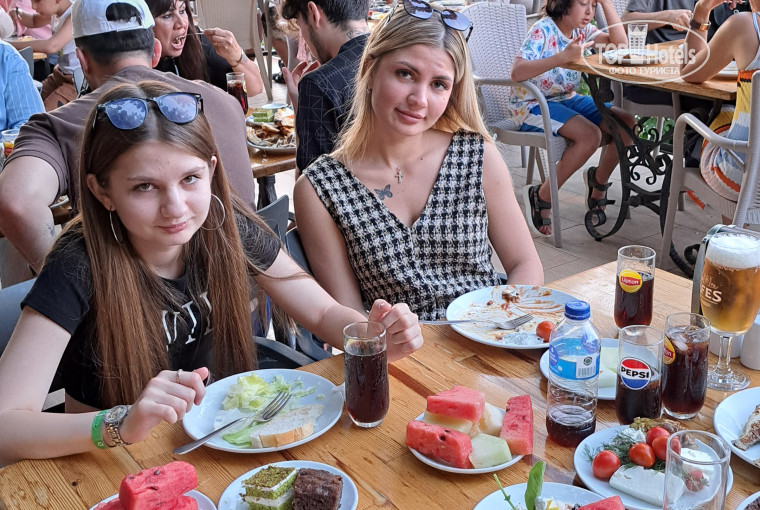 Были на отдыхе с 28 августа по 7 сентября. Изначально как то, судя по отзывам, было не по себе. Но решили все таки взять тур. И не разочаровались! Ехали часа 2 до него. Сначала на автобусе, потом нас пересадили на маршрутку. Прилетели утром, в отель прибыли в районе 11 часов. Заселились после 14.00. Номер семейный, на 6 этаже. Просторный, вид , конечно, с балкона обалденный! Отель самый последний, поэтому виды сказочные, мне, кстати, очень понравилось, что не в самом центре, в город можно как и пешком, так и на маршрутке, которые ходят очень часто, проезд 40 лир. Анимации нет, что нам только +. Были по вечерам небольшие мероприятия, через день, часов до 11. Номер убрали 1 раз, но да ладно, мусор сами выставляли, но мы даже не переживали по этому поводу. Ходили в спа, забыла только имя массажиста, кстати, советую сходить, нам очень понравилось. Еда- все вкусно, фрукты постоянно- яблоки, апельсины, арбуз, дыня, сливы. Мясо, рыба , всякие блюда, очень вкусное все, единственное, сладости как то одни и те же, тортики всякие, булочек не было. Завтрак- омлет, яичница- повар молодец, весёлый всегда. Алкоголь джин, вино, пиво, может еще что, не знаю. Ребята - официанты, и остальные работники- молодцы!! Видно, очень стараются, приветливые, респект им! Пляж- 2 шага, и ты там, лежаков всегда хватало, море тёплое, супер! В бассейн не ходила, только девчонки бегали, с горки катались. Туалеты возле пляжа всегда чистые, убраны. Вообщем, вернёмся ли снова туда- однозначно Да!!! Езжайте, не пожалеете.