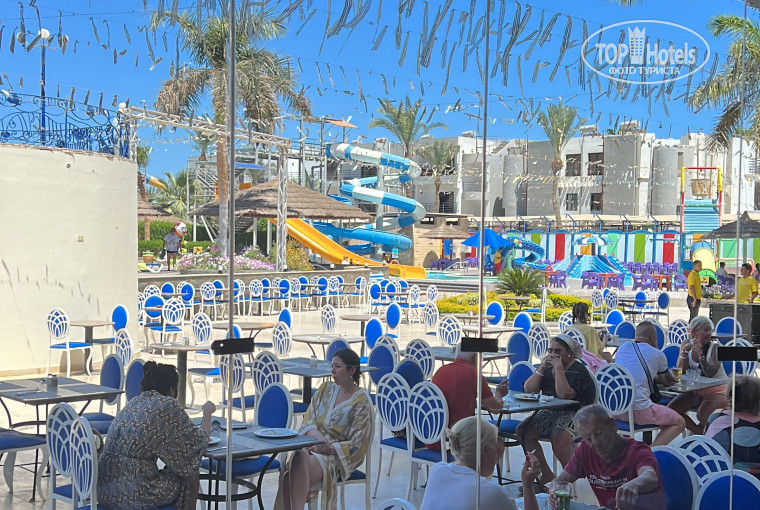 На территории отеля работает аквапарк. Горки для взрослых и водный городок для малышей.