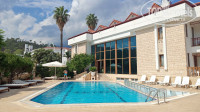 Отель оставил исключительно приятные воспоминания. Отдыхали в октябре - народу было совсем немного, детей было и вовсе очень мало. Простой, но читый и уютный, с приветливым персоналом, полный кошек, котов и котят. Кажется, что отдыхаешь у кого-то на простенькой виллочке с мандариновым садом. Атмосфера очень домашняя. Никакой конкуренции с занятием лежаков полотенцами, занятием столов сумками, ругани в лобби и прочей суеты)) Бассейн так вообще практически всё время пустовал и всегда можно было найти и свободный зонтик и шезлонг, чтобы скоротать лишние полчаса до обеда. Днем отель практически пустел - постояльцы расходились кто куда.