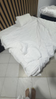 Постельное это отдельный вид искусства , на двуспальную кровать выдают 1.5 одеяло накрытое двумя простынями. Ножки без одеяльца или ручки.