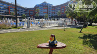 Территория очень ухоженная, чистая, видно, что стараются поддерживать, за это большой плюс отелю. Прекрасный аквапарк, много бассейнов с чистой водой.