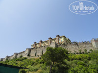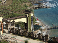 К морю либо пешком, либо на лифте. До лифта пешком по крытому переходу. Спуск на лифте - виды на море захватывают дух.