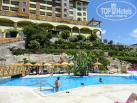 На территории много зелени, детская локация с аквапарком, водопадом, мини речкой.
