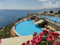 Основное здание на высоте и виллы по склону. Много подъемов и спусков, не для пожилых.