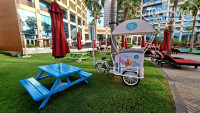 - бар у бассейна Sunset хорош по напиткам, для "всё включено" доступны закуски типа фаст-фута. За доплату могут приготовить на гриле лосось/осьминога/говяжий стейк. Удобно, что можно сделать заказ через приложение, отсканировав qr-код на табличке под зонтиком.