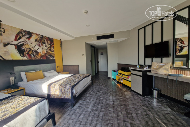 Номер. Большой, красивый, единственный минус пожалуй не очень удобные подушки. И верхний этаж жаркий. Балкон классный, на нем тоже можно было позагорать).
