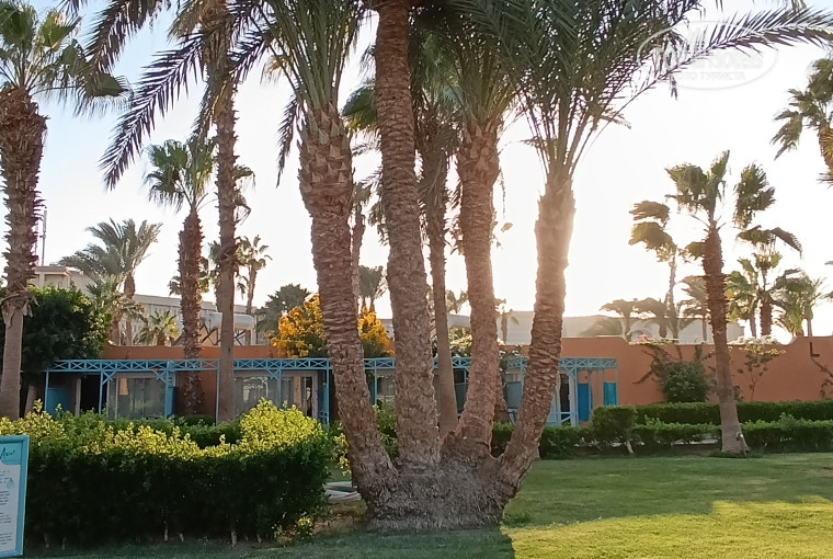В Египте уже в 6-ой раз. Выбрала этот отель по отзывам и по расположению, не далеко от аэропорта. Летели с подругой из Калининграда чартерным рейсом египетской компании. Очень обидно, что рейс был задержан аж на 5 часов, в итоге, мы попали в отель в 12 ночи, потеряв пол дня отдыха. Несмотря на поздний приезд нас покормили в ресторане и потом заселили в бунгало. Досталось I 5 Бунгало удобно расположено близко к лобби, у нас на веранде ловил вай-фай. Шума от дискотеки особо слышно не было, звукоизоляция хорошая, да мы сами поздно возвращались в номер, а все танцы заканчивались в 12. Не смотря на то, что мы ещё при бронировании просили номер с двумя отдельными кроватями, дали с одной, было неприятно такое невнимание. Нам предложили поменять номер завтра утром, но после небольших перепирательств, сошлись на том, что нам просто принесли дополнительную кровать в номер, что нас в целом устроило. Номер вполне чистый, всё работало, постель удобная. Правда наш уборщик не очень хорошо убирался, чуть по центру мыл полы, а под креслами был песок. В номере чайник, с водой и чай кофе пополняли каждый день. Вода горячая была всегда. Мыло и гель для душа из дозаторов. Отель в основном ориентирован на немцев, их там подавляющее большинство, русских почти не было. Что хочу отметить, немцы в основном пожилые. Территория большая, есть городок кошек, там о них очень заботятся. Так что, кто не любит животных, вам не сюда. Котики приходили к нам в гости в номер, но нам это даже было приято. Мне очень понравилось, что хозяин отеля, так заботится об этих животных! За это ему прям отдельное спасибо!