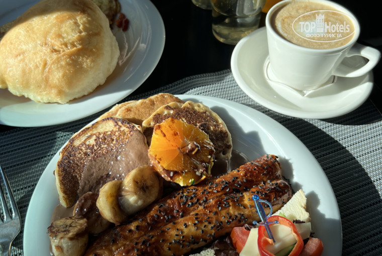 Бары, снек-бар у пляжа, витаминный бар, мороженое, Старбакс - все отлично и вкусно! Ассортимент шведского стола показался нам слегка однообразным, но голодными мы никогда не оставались (из минусов - горячая еда быстро остывала в тарелке, фруктов было маловато, за вкусным кофе ходили только в лобби-бар). Официанты по запросу наливают вино или другие напитки если подозвать и попросить их, так как первыми к вам они не подойдут (это супер для тех, кто не любит назойливость официантов). Очень плотная запись в а-ля карт - мы записались на третий день своего проживания и нам нашли место только на наш последний день (получился своего рода прощальный ужин). Много импортного алкоголя, приятное пиво в бутылках, колу/спрайт/фанту можно было просить в стекле, а не на разлив, что тоже огромный плюс. Огромное количество коктейлей, в кафетерии в постоянном доступе маленькие пакетированные соки разных вкусов (апельсиновый мой самый любимый) и молочные коктейли типа нашего Чуда или Топтышки (их брали не только детки, взрослые тоже такое любят пить:)).