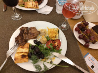 А вот теперь вишенка на торте, из-за которой отдых был очень сильно подпорчен, несмотря на наше оптимистичное отношение и насыщенную поездку. Посуда устала, бывает со сколами (пример сколотого ободка стакана на фото). Выбор еды был скромный. Оливки и маслины все были очень сильно замаринованы (либо много соли, либо перца, либо уксуса, либо всё вместе). Горячих блюд особо выбора тоже не было, меню в основном повторялось изо дня в день. Рыба была один раз и в тот день, когда половина отеля лежала после отравления. Да-да, гости и аниматоры массово отравились. Выяснили мы это когда сначала моему супругу стало плохо, а потом уже и я сползла по стенке в лифте, напугав семью немцев. Когда начали выяснять в чем дело, оказалось, что многим гостям стало плохо. У аниматоров вообще ситуация была катастрофичная. Никаких извинений, компенсаций и т.д. от отеля не последовало. Сказать, что это возмутительно, ничего не сказать. Вот тебе и all-inclusive.