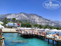 Лежаки у моря и маленьком пирсе найти можно было всегда. У главного бассейна практически все было занято, у маленьких бассейнов также места были.