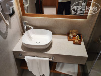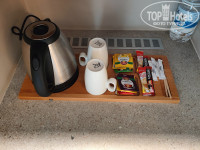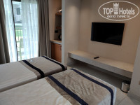 В номере виден косметический ремонт, новая сантехника, плитка, удобные матрацы, но деревянные элементы мебели, дверных проемов видно, что старые. Из недостатков - мало освещения, полумрак, особенно в ванной. Всего один крючок для полотенец. Почему-то нет прикроватных тумб, только выдвижной ящик с одной стороны - неудобно. Также для меня минус был ТВ, вмонтирован в стену, доступа к USB нет, сериальчик в отпуске посмотреть опять не удалось. Уборка в номере была ежедневной, минибар обновляли каждый день.