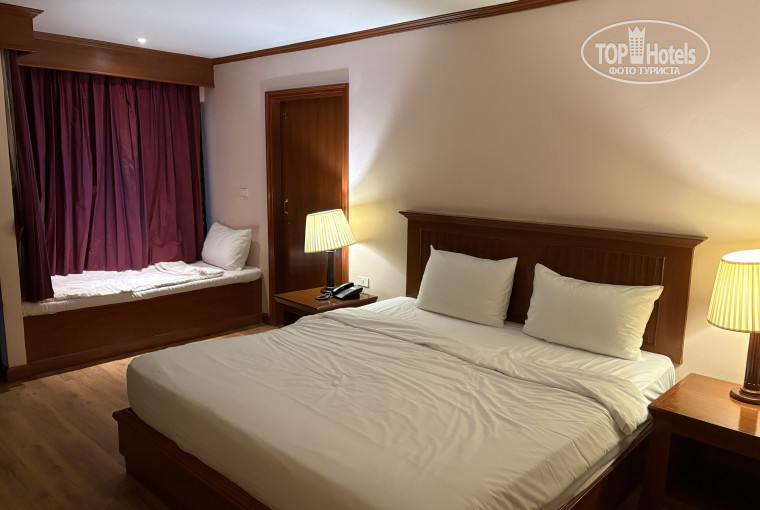 Приехали в отель уже вечером, поэтому заселили нас быстро. Номера не прям современные, но нас все устроило, мебель и постельное в хорошем состоянии, кондиционер охлаждал отлично. У нас в номере был и душ и ванная, у друзей только душ, но зато санузел со свежим ремонтом. Очень понравилось огромное окно во всю стену. Кстати, чуть раньше, когда ребенок был маленький я обращала внимание на наличие детских кроваток в отелях, дак вот в этом отеле они есть и это огромный плюс для тех, кто путешествует с 1-2 годовалыми детьми.