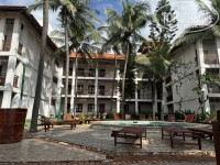 Через 9 лет я вновь прилетел во Вьетнам, первый раз был в отеле все включено и теперь решил провести отпуск в отеле с системой завтраки включены. С аэропорта Камрань добирались до отеля часа 3-3,5. Приехали в час дня и сразу нас заселили в номер. Наш номер на 3 этаже, в номере все работало. Телевизор показывает только программы на Вьетнамском языке. В номере есть сейф бесплатно(электроника не работала у нас и мы на ресепшен взяли ключ и так пользовались сейфом), чайник две кружки и два стакана чай и кофе и две бутылки воды по 0,5 л (пополняются ежедневно). Уборка номера ежедневно с заменой полотенец, включая и пляжные. Наш номер с видом на море и на дорогу, поэтому шумно в номере особенно это заметно ранним утром. Разместились и пошли в ресторан обедать, обед и ужин сразу заказали на весь период при покупке тура. Обедают и ужинают в данном отеле единицы отдыхающих. Достаточно ресторанов рядом с отелем. Заказ на следующей день происходит на ужине, выбор из двух вариантов. Обслуживание на обеде и ужине очень понравилось все вовремя приносят и уносят, общались с персоналом через телефонный переводчик. Завтраки добротные шведский стол есть суп мясо курица гарниры фрукты (на фото все подробно). В отеле есть бар. В отеле два бассейна один джакузи(включают рано утром не надолго , в 9 утра уже не работает. Лежаков всем хватает как на пляже так и у бассейнов . Пляж песок вход пологий, удобно с волнами заходить( пляж песок со временем береговая линия меняется и вход может быть не удобный, смотрите свежие фотографии) . В море часто волны, один день мы не купались, а два дня волн до обеда не было совсем. В прошлый наш отпуск все дни были большие волны, только прыгали на волнах. Анимации нет в данном отеле. Отдыхающих не много и друг другу не мешают. Отель для спокойного и размеренного отдыха. Территория у отеля не большая. Пляжная линия достаточная для такого маленького отеля. Территорию пляжа хорошо убирают от мусора и выравнивают песок. На пляже есть душ. Рядом с бассейном джакузи есть бочка с водой где можно помыть ноги от песка. Для маленьких детей здесь нет нечего кроме места в бассейне и если будут волны на море нет возможности купаться им только играть в песке. Для маленьких детей не рекомендую данный отель. Минус часть номеров выходят на оживленную дорогу, хорошо слышно проезжающие машины. Рядом есть магазины где можно закупиться. Достаточно мест где можно обменять деньги по выгодному курсу . При выходе из отеля пойдешь на право будет много ресторанов с морепродуктами , из аквариума вылавливают. На лево пойдешь много разных ресторанов и магазинов, есть аптеки. Мы на лево уходили гулять по улице на 3,5 километра, везде есть торговля. При необходимости на ресепшен выдают большие зонтики. В отеле много отдыхает русскоговорящих, примерно половина. У отеля два корпуса один трех этажный и другой пяти этажный, есть в обоих лифт. Отдыхающие соседнего отеля через дорогу могут пользоваться пляжем и бассейном нашего отеля, проблем не возникало.