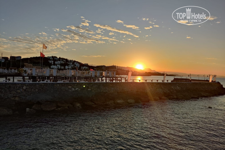 Есть два варианта входа в море. Пирс и песчаный пляж. Мы - любители пирса - и это для нас немаловажный фактор выбора отеля. Единственный минус - мест на пирсе не так много и, чтобы не остаться без места, пришлось поддаться общему ажиотажу и занимать места чуть раньше. При чем, чем дальше, тем раньше. И это касалось не только мест на пирсе, но и на пляже.