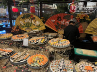 Питание отличное: красная рыба на гриле и в сливочном соусе, суши и роллы раз в неделю, очищенные креветки с овощами на гриле, кальмары в разных видах, баранина, курица, котлеты, тефтели, вареная кукуруза, Дорадо и сибас, все очень вкусно приготовлено. На завтрак нежнейшие блинчики как дома. В ресторане приносят напитки. Кроме основного ресторана днем снек бар (работает как ресторан, заказываешь по меню) Лимон кафе с ароматной выпечкой и очень вкусным мороженым. Ходили в азиатский Аля карт, очень понравилось, заказали роллы, салат с мандарином и пад тай с креветками, на десерт жареное мороженое, все обалденно вкусно. В барах импортный алкоголь, шампанское, апероль, мартини и коктейли очень вкусные, не просто намешано не пойми что, а так как надо. Персонал отеля старается во всем угодить.