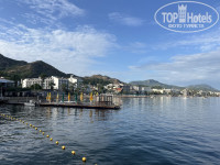 Пляж пологий песчаный, вокруг 2 пирса, и как будто бы они защищают от ветра. Иногда от волн прибивало мусор, если вода спокойная, то все чисто. Лежаков всем хватало. Жаль, что солнце рано за гору заходит.