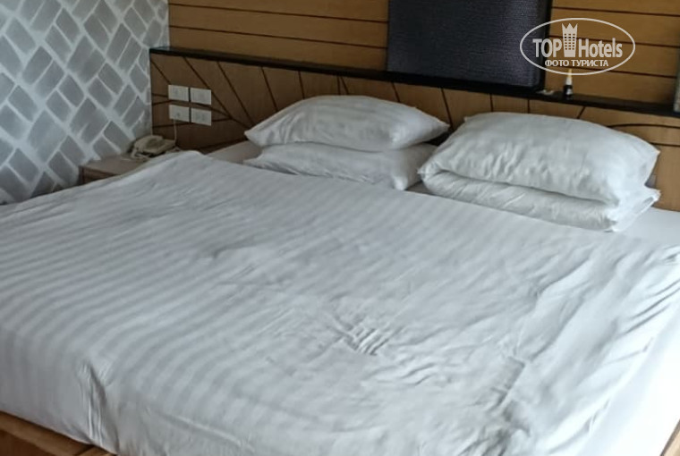 Шикарная большая кровать (как и везде состоит из двух), матрас (жесткий), подушки очень удобные, одеяло тёплое. Телевизор без русских каналов, порт USB есть, также можно подключить через телефон какой-нибудь Ю-тьюб, если кому надо. С интернетом всё отлично и в номере, и в лобби, добивал даже до соседнего массажного салона.