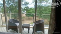 Наш номер на 3 этаже (321), с балконом и видом на море, таких в отеле всего 6 (double room with sea view window). При выборе номера обращайте на это внимание, поскольку есть номера вообще без окон или с балконом, но "с видом" внутрь отеля. Для нас вид важен... На балконе плетеные пластиковые столик и 2 кресла, курение не запрещено. Никаких верёвочек или иных приспособлений для сушки полотенец, белья нет. Еще один момент по номеру - балкон выходит на улицу, соответственно все шумы от машин ощутимы, кроме того, прямо под нашим балконом был металлический люк, который громыхал. Тем, у кого сон очень чуткий, это может помешать, беруши в помощь)))
