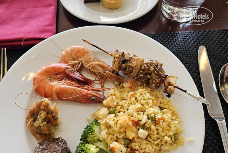 Рекомендую выбирать полный пансион: кухня действительно впечатляет. Блюда разнообразные, свежие и очень вкусные — каждый день можно открывать новые вкусы, при этом есть и привычные европейские опции. Обслуживание шведский стол, атмосфера приятная. Очень богатый выбор!