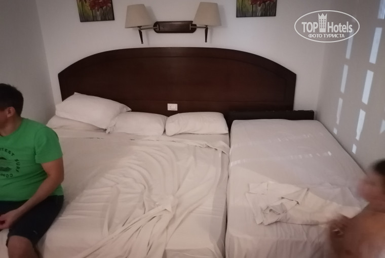 - номер делюкс намного дороже чем стандарт, чем они отличаются я понять так и не смогла. А, чайник, но он и не понадобился нам ни разу... Ооочень маленький номер. У нас была двуспальная кровать + доп.место от стены до стены, проход коврик супергрязный и мебель вдоль другой стены. Пространства минимум. Кондиционер не регулируется, ставишь на +30, дует так же как и на +15. Спали в духоте.