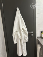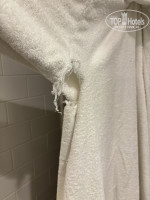 Ванная комната выглядит довольно прилично. Из косметических средств есть только во флаконах с дозаторами шампунь и жидкое мыло (он же гель для душа), еще два зубных набора. Но самое интересное, что в ванной у меня присутствовало только одно полотенце для рук и одно – для ног. Серенькие такие, застиранные. Полочка с банными полотенцами - пустая. Звонок на ресепшен, принесли. Тапочки были в номере, халата не было. Опять звонок – на ресепшен. Халат принесли в мое отсутствие, оставили свернутое на кровати. Разворачиваю, и не понимаю, что это. Вместо пояса, две коротенькие веревочки, которым был халат перевязан. Разворачиваю халат, а подмышкой огромная дыра. Как вообще такой халат еще не оказался на помойке, а мог быть предложен гостю отеля, для меня загадка. Опять позвонила, принесли в этот раз хороший, махровый, пушистый халат, может даже новый) А коллеге достался вафельный халатик, застиранный.
