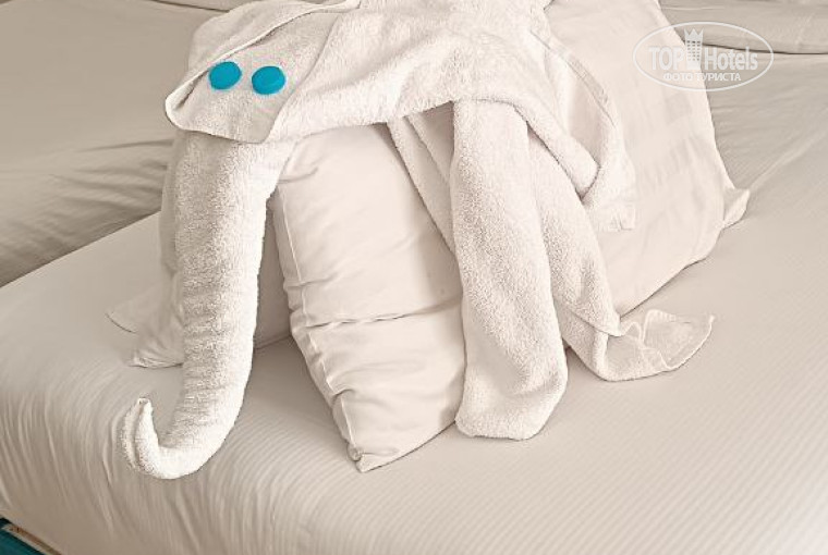 Номер достаточно большой с 3мя отдельными кроватями. Мебель, конечно, старенькая, ремонт давно пора освежить. Из Российских каналов работало только тнт. Но в целом все чистенько и все работало, матрасы на кроватях удобные, в номере сейф, утюг, фен и тд, поэтому общее впечатление положительное. Номер находился на 1 этаже (5004), было удобно ходить в рестораны, можно было выходить через веранду. Уборка хорошая, уборщик старался, делал разные фигурки из полотенец (чтобы полотенца меняли, их нужно бросать на пол, иначе их сложат и положат на полку).