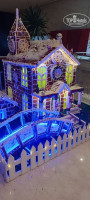 Территория отеля очень красивая и большая, зелено, в отеле во время нашего проживания все украсили к Новому году. Было по-новогоднему волшебно (большая елка в холле, олени, дед мороз, который двигается и поет песни, безумно красивый пряничный домик и тд). Все выложила в фото.
