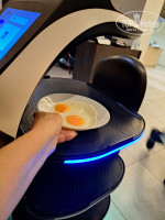 Фишка ресторана-робот на завтраках развозит яичницу или омлет (заказываешь с добавками или без, по предпочтению)