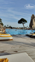 Территория. Большая, а по описанию так просто огромная, но – половина наверно это виллы и бывший аквапарк. Деревья сосредоточены на холме как лес отдельный и вдоль дороги на пляж аллея да еще одинокое дерево на пляже – так что не очень то и зелено – в основном газоны, местами сильно испорченные. Бассейны очень большие и в несезон есть подогрев одного из них, НО! Поручни в бассейнах того и гляди отвалятся – опасно! Общая территория пляжа и бассейнов так просто огромная и уходит в одну и другую сторону от бара, и вот на всю эту территорию где наверно собирается днем сотни отдыхающих, НО! – внимание! – один маленький туалет да две кабинки для переодевания. А туалет у миниклуба вообще закрыли – зима говорят. Вывод напрашивается сам собой…