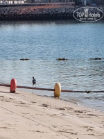 Пляж хороший, море, конечно, выглядит как речка, после обеда немножко грязная вода, тёплая, купались, всё нормально, и для взрослых глубина, есть понтон, можно попрыгать, лежаков хватало, полотенце пляжные, бассейн потеплее, чем вода в море.