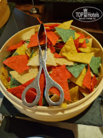 Ресторан, вот здесь вообще было очень интересно, основной ресторан находится в коридоре под лестницей, и, как нам объяснили, это архитектурное решение. На мой взгляд, не очень приятно. Ты стоишь на ресепшене, вот как мы приехали рано утром, регистрируемся, тут же народ сидит, ложками, вилками гремит, кушают дети, бегают и так далее, есть альтернатива коридору, слева от ресепшена, но здесь, если час пик, то столиков нет. Можно сесть на улице. Питание в отеле нормальные за неделю Конечно всё приелось.