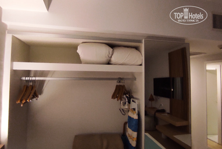 Комнату получили 3131. На в третьем этаже, в разумной удаленности от лифта. Удобно. Внутри все новенькое, свежее. Пара раздельных кроватей с хорошими матрасами, новеньким бельем и удобоваримыми подушками. Напротив телевизор с диагональю порядка 42 см. Есть сейф, чайник и холодильник. Платяной шкаф открытого типа с плечиками, гладильной доской и утюгом.