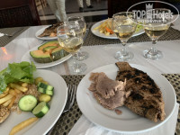 Рука дающего да не оскуднеет! Даёт. Одно-два яйца, одна кебаб, кусочки мяса годятся скорее всего для канапе на зубочистках. Причина - неумеренность некоторых не патриотов идеи социализма с человеческим лицом, а скорее всего воровского капитализма. что может привести к громкому озвучиванию обеда (трамп-эффекту). «Лицо без глаз, улыбка без лица» как у Гидеона Рабина. Пропорции выдачи для русскоговорящих к прочим - uno/tre, но в целом всего хватает. Осторожно! Столы неустойчивы - они вертятся(не для вызывания духов !). Смены постельного белья за время пребывания не произошло, смена пляжных полотенец ( она бесплатна!) – через пинок уборщику. Отель следит за датами рождения гостей и , стало быть, нет необходимости сообщать об этом менеджеру отношений с гостями. В дверь номера постучит посыльный и вручит открытку, напечатанную на цветном принтере, которую необходимо предъявить в ресторане. И тогда к Вашему столу направится ручеёк с даффами и зурной. В руках первого в хороводе торт.