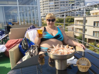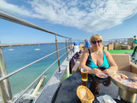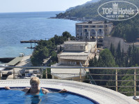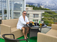 Были с женой в сентябре. Быстро заселили. Номер стандарт очень хороший. Вид на море. Внизу пляж сразу же. Удобно спускаться и ты купаешься уже. Тут же ларьки -пиво и рыба. Всё рядом. Был Столик перед номером.Вечером пили вино и дискотека возле бассейна.Над нами бассейн был. Ходили в него. Рядом бар с вкусным пивом. Еда в столовой -на пару, тушёная. Очень вкусно. Не было изжоги. Предлагают выпить вино сухое и пиво -сколько выпьешь. Столовка- с видом на море. На балконе сидели, ели. Очень красивое море. Красивая архитектура. Спа хороший. Вайфай средний, лучше на ресепшене. Далеко до набережной- идти тридцать минут. Там магазин "Пуд" - покупал фрукты и вино, пиво на вечер. Магазин -возле отеля "Приморский парк". Дальше по набережной кафе и уличные базары- магазины сувениров. Кафе "медийное место"- очень вкусно поесть мидий и морепродуктов.Ларьки экскурсий. Назад к отелю идти долго-Через отель "приморский парк" и "Зазеркалье", но везде красивая природа и хорошо пахнет эвкалиптом. Лучше заказать такси-300 руб. Если ноги заболят.