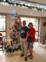 Всем доброго дня! Проживали в Рамаде в середине декабря 2025г. с супругой. По прилёту выдают на паспортном контроле симкарту с 10Гб, действует 24 часа после активации! Оставили их на последний день, в отеле прекрасный вай фай. Приехали в отель после обеда, заселили сразу , номер 505, почему то для курящих (наклейка на входной двери), обратили на это внимание позже, но не стали заострять т.к. запаха не было . Предлагали восьмой этаж «с видом на море» за доплату 350$, естественно отказались. Вид на море в этом отеле скажем честно весьма условный. По ваучеру Room type – DBL (One Bedroom) – заселили в двухкомнатный номер огромных размеров для двоих. Гостиная зона с диваном, креслами, телевизором, мини кухня- стол, четыре стула, эл.плита, чайник, чайные принадлежности, посуда, включая какие-то кастрюли, ложки- вилки-ножи. Мы не пользовались, но в принципе желающие могут готовить. Каждый день пополняют запас воды, по литру на человека в стекле, внимание, бутылки нельзя забирать и выкидывать! Об этом есть предупреждение на бутылке! Два санузла, спальная комната с большой кроватью, одно большое одеяло и очень широкие четыре подушки . Сейф в номере, тапки. Халаты по требованию. Халаты если просто лежат на кресле, то уборщик заберёт «на чистку», приходится прятать:), чтобы опять не производить процедуру требования. В душе гель, шампунь, какие-то палочки, ватные диски. Чуть не забыл, тапки не очень большого размера, вечер разнашиваешь, на след вечер-сюрприз, тапки новые в упаковке, опять разнашивать :). Т.е. тапки однодневки. Лифт наверх работает только с ключом от номера.