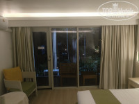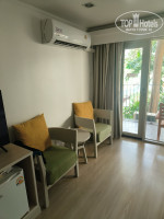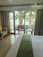 Номера в отеле с балконами, чистые, светлые, с окнами в пол, все смотрят на внутреннюю территорию – на сад или бассейн. Есть и бунгало, но в них, я думаю, не так светло: небольшое окно и полдвери со стеклом. На балконах или террасах - стол, деревянная сушилка и два стула. Тапочек нет. Зубную пасту и щетки брали с собой. Из мыльного - только шампунь и гель для душа. Дают ещё и спрей от комаров. Сантехника хорошая, душ наполовину отделен стеклянной перегородкой, есть бортик, вода на остальную часть не затекает. Есть номера с ванной. Шкаф - бестолковый, там есть одна полка, где стоит сейф и больше полок нет. Разместить одежду пришлось на 5 хилых плечиках и сложить в чемодан вместо полки на большой тумбе. В шкафу 2 зонта. В номере также есть обычный стул, стол для ТВ, деревянный круглый стол, два кресла, по бокам от большой кровати - тумбочки. Освещение красивое, довольно яркое. Кровати мягкие, на колесиках, обернутые в ткань, поэтому не катаются. Одеяла большие, много подушек. Новый кондиционер расположен так, что гонит воздух на часть кровати. Створку направления потока воздуха на нём рукой надо опускать вниз до конца, чтобы не дуло. Из техники – мини-холодильник с мини-баром, фен, чайник и навороченный телевизор, работающий через интернет. Там даже есть кнопки Netflix, YouTube и ещё какие-то. Нашли 2 российских канала (типа второго и вести 24). ТВ мало смотрели, так как в номере редко находились. Днем могли поесть что-то, сидя на балконе, созерцая красивый вид. Вечером уже не получится из-за беззвучных комаров. Старайтесь поменьше открывать дверь на балкон, а то некоторые соотечественники радовались свежему теплому воздуху, а потом ходили покусанные. В номере две чашки и два стакана, набор чая, кофе, сахара и сливок, постоянно пополнялся. Две стеклянных бутылки с бесплатной водой. Остальное, что в холодильнике – платно. Мы его и не трогали. Убирались в номере хорошо, каждый день меняли полотенца, несколько раз меняли постель.