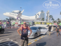 Самое главное – отель рядом с огромным и оригинальным ТЦ Терминал 21 с самолётом перед ним. Выходить будет ближе через отель Sunshine. В ТЦ множество фирменных магазинов и ресторанов. На последнем этаже (первый у них G, второй - M) находится недорогой фудкорт Pier 21 c вкусной и разнообразной едой. Кладешь на кассе на карту определенную сумму и набираешь еду по разным отделам, они её списывают с карты. Если деньги списались в ноль, то в этом же отделе карту забирают. Остаток возвращают на той же кассе. Мы там брали пад тай, разные блинчики роти, смузи, вкусные роллы и, конечно, же Том Ям. Его не сразу нашли. Это отдел 6 справа. Суп 55 бат, вкусный, неострый, с четырьмя креветками, по желанию можно взять тут же бесплатно пакетик острого соуса. Здесь же рис с курицей и орешками в ананасе. В комплекте суп и ананас – 130 бат. Некоторые в отзывах жаловались, что на фудкорте много людей и они не могли найти свободное место. Мы были в разное время и всегда находили, иногда спрашивали и подсаживались к иностранцам или соотечественникам. Единственное, что поздно вечером могут быть остатки из ассортимента готовящихся продуктов. Вечером около терминала открывается небольшой ночной рынок, тоже можно найти что-нибудь вкусное на ужин, попробовать необычного, прикупить сувениры или вещички, также там живая музыка на сцене.