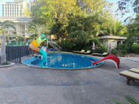 Пляж – это слабое место отеля. Он налево от выхода из отеля. Пляж песчаный, есть деревья, есть лежаки под ними. Кто-то писал, что прекрасно плавал до отлива, потом море уходит и выступают камни. Мы не рискнули. Видели, что можно найти небольшое безопасное пространство до камней, где дети купались. Если пойти направо от пляжа после спуска от лестницы, то через 15 мин будет, самый чистый пляж в Паттайе ВонгАмат. Но в прилив туда сложно попасть из-за больших камней на мысе. Лучше по улице: направо из отеля и на главной четырехполосной улице Наклуа налево и до магазина Top's Daily и там повернуть налево и до упора на пляж. В конце будет проход, с правой стороны находится большой и красивый отель - Centara Grand Mirage. Как раз в этом проходе идёт канализация, журчащая в 5 м от моря. Труба, наверное, выходит далеко в море. Говорят, что за время ковида здесь много сделали для очистки стоков. Запаха не было, море довольно чистое, но не такое прозрачное, как на любимом нашем Пхукете, где мы были 4 раза. Можно ездить на острова, там вода красивая чистая, но для этого нужно потратить время в пути до парома, на пароме и до пляжа. На пляже много народа, гидроциклов и катеров. В общем, не наш это образ отдыха. У нас отели чаще всего были рядом с морем, чтобы можно было прийти и уйти оттуда в знойный полдень. Впервые часть отдыха провели у большого красивого бассейна отеля, что в принципе заранее и не исключали.