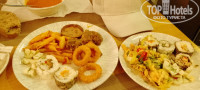 ПИТАНИЕ. В ресторане красивые тарелки. Красивая и удобная посадочная зона. Светло. НО! Питание не понравилось. гриль на улице за 5 дней 2 раза. и то рыба сухая и типа люля кебаб. зато очередь огромная и дым, пока стояли (20-30минут) все провонялись. В ресторане типа суши овошные. анчоусы и форель на пару. скумбрия жареная. курица вареная и гриль. Но форель могут спрятать (убрать и накрыть) ,, а потом достать , но почему-то позже. может для своих? Понравился суп вермешелевый от шеф повара))). фруктов очень мало, одни яблоки, бананы и зеленые мандарины. дубовые груши и невкусные апельсины. арбузов(!)не было. о, ужас! Была пахлава, но без разнообразия. зато мини тортики и пироженки разные. пудинги-желе. По выдаче айран и только в ресторане. рахат лукум мелко порезанный. халва разноцветная. много джемов и варенья. из лепестков роз, шелковица.... Категорически НЕ понравилась раздача напитков. Чай-кофе-сок не налить. Самому не взять только через официантов, а тех, пока дождёшься-дозовёшься уже наелся. одного поймаешь, а он оказывается не разливает, а посуду собирает.... и так не только чай, но и пиво-вино. крепких напитков в ресторане не дают. Чай-дрянь! ужасная дрянь чай!!!! кофе-сойдёт. Пару раз вино наливали сами! Не понравилась ни еда, ни раздача. и... очень грязная посуда. стаканы все облапанные. страшно из них пить. Представляете разливают в грязные стаканы. пытались сказать - не слушают. игнор. так как народу за напитками много - человек по 10 на ужине. минут 3-5 стоять..... Короче, обед и ужин "зла не хватает" - сплошные маты в душе))